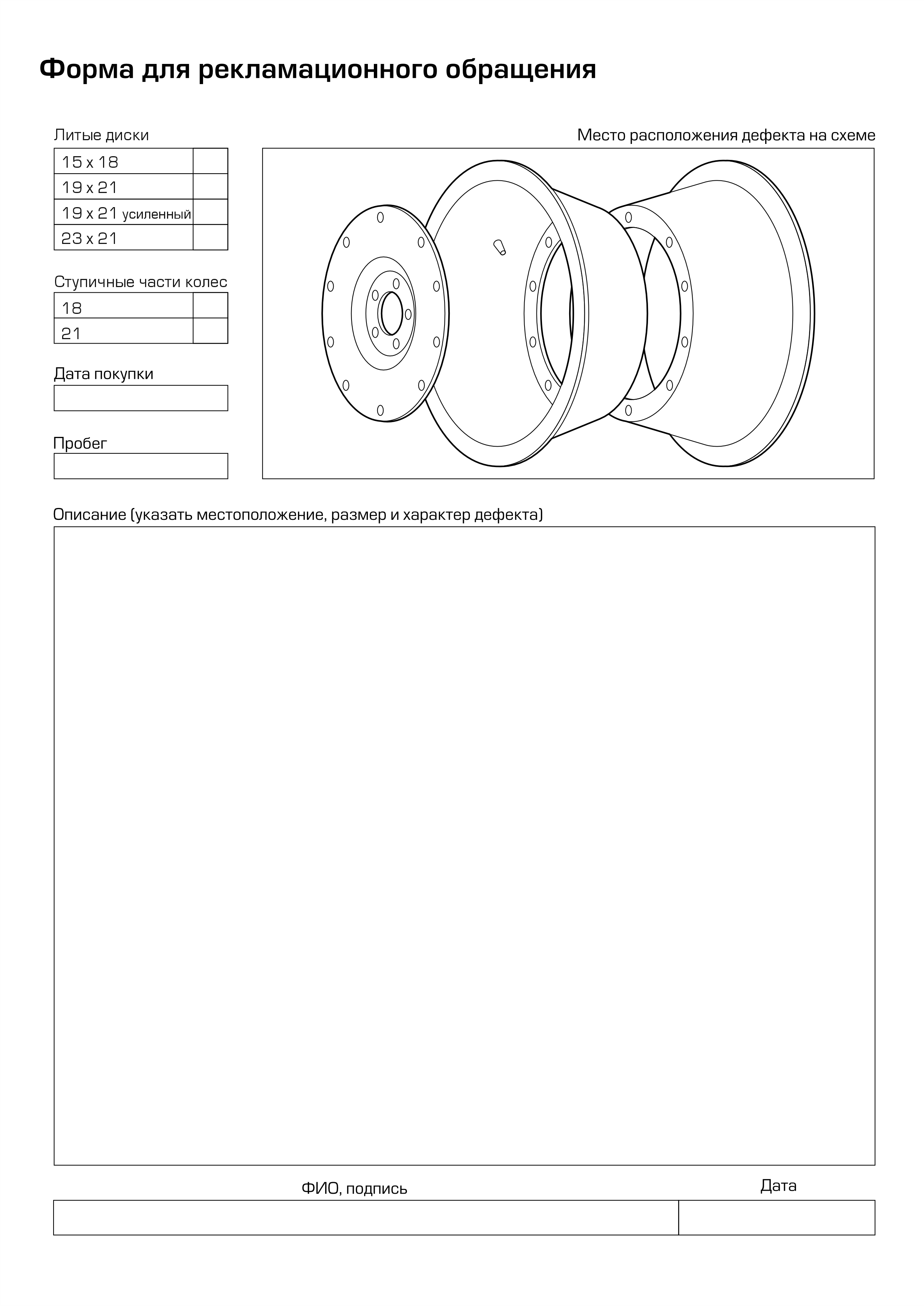 Примечание: На каждую шину и диск с дефектом, которую хотите поменять, рекламационный акт заполняется отдельно, фото-видеофиксация подтверждения дефекта каждого диска и шины осуществляется по тому же принципу!