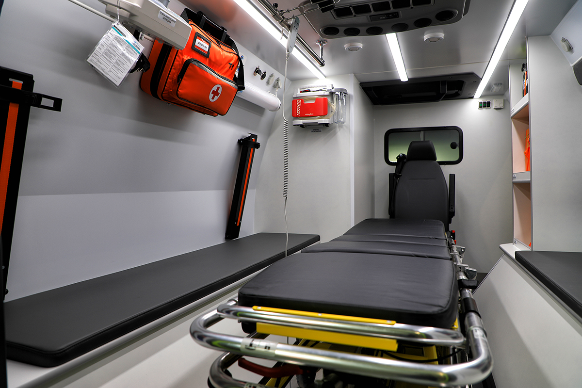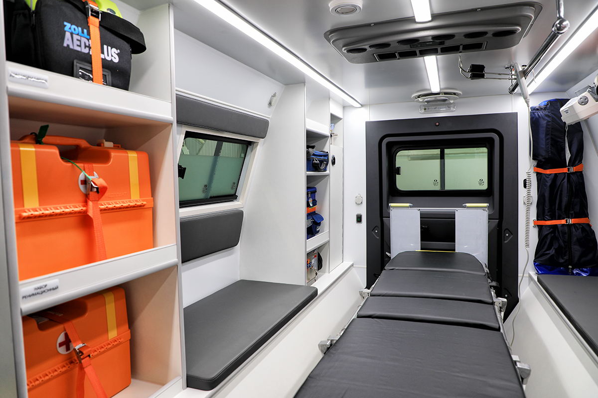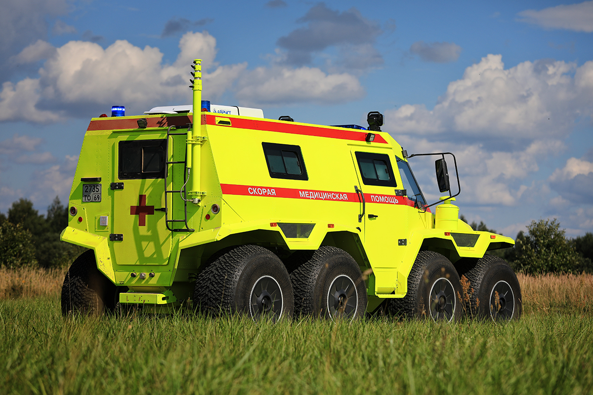 Благодаря большому внутреннему объему вездехода в салоне возможно разместить: водителя, до четырех медицинских специалистов и до двух пациентов. Вездеход максимально адаптирован для транспортировки пациентов: обладает высокой тепло и шумоизоляцией и отличается продуманной эргономикой.