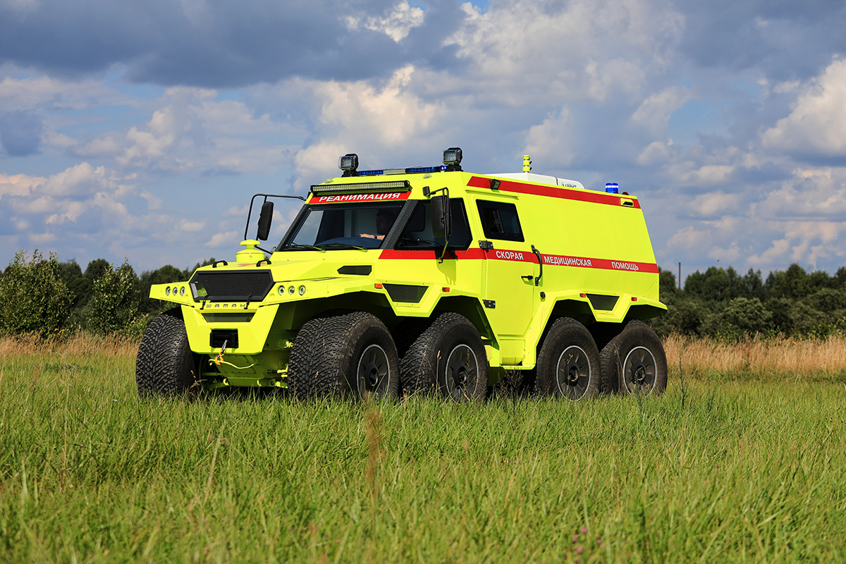 Вездеход "ШАМАН" предназначен для транспортировки пациентов и оснащен медицинским оборудованием в соответствии с приказом №388н Министерства Здравоохранения РФ.