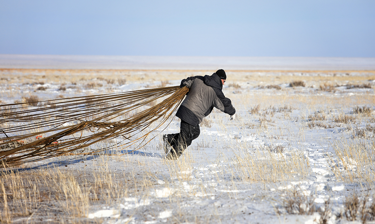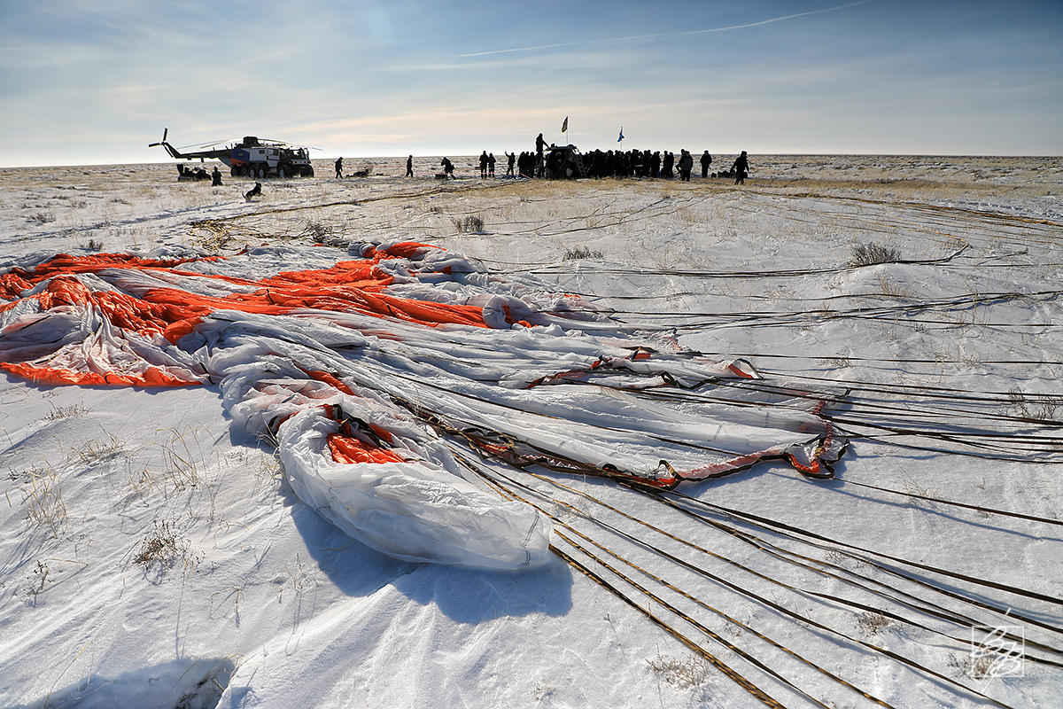 6 февраля 2020 года произошло приземление спускаемого корабля Союз МС 13. За день был сильный буран, но в день до посадки выдалась чудесная погода, ясная, без ветра. Самая замечательная погода для встречи людей из космоса. Капсула приземлилась в 15 км от нашей стоянки и мы на всех порах выдвинулись к ней. Всё успели, всё пришло в штатном режиме.